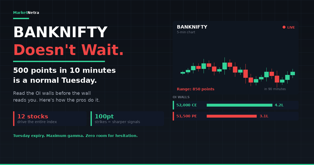 BANKNIFTY moves 500 points in 10 minutes on a normal Tuesday. Here's how pros read the OI walls, PCR shifts, and max pain to stay on the right side of the most volatile index in Indian markets.